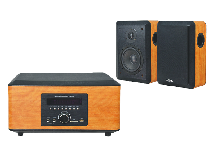 AMS-3805 2.1语音智能影K系统低音炮参数低音炮:8寸信噪比:>81dB 外观:高档桦木贴皮顶部皮纹功率:80W+2*30W(功放)失真:≦1% 频率响应:35Hz-120Hz左右音箱参数中低音:5寸阻抗:4Ω 灵敏度:86dB±3 外观:高档桦木贴皮高音:2寸丝膜高音输出功率:30W 失真:≦1% 频率响应:65Hz-20KHz