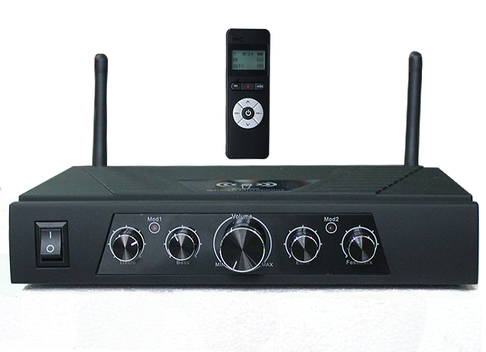 Function introduction 1, transmission distance greater than 30 meters, can use two wireless microphones at the same time. 2, built-in DSP audio processing functions, to achieve high bass adjustment, digital echo ECHO adjustment 3, built-in DSP audio processing functions, to achieve digital feedback control function. 4, with PPT flip function, no need to install the driver, connected with the computer USB port can be realized.