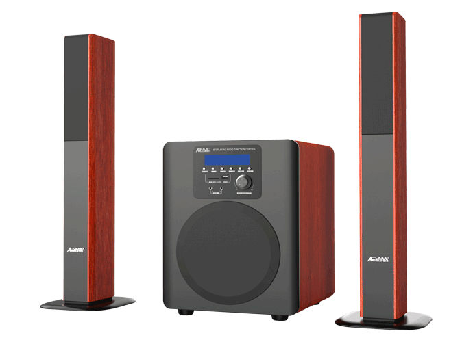 AMS-361 family living room 2.1 speakers series Product features VFD dynamic fluorescent display and full remote operation, highlighting the high-end atmosphere and the machine, black brushed aluminum trim and black matte paint panel, highlighting this process rigorous, elegant; 8 inch woofer with glass fiber membrane with high strength and damping material, long stroke and high power linear displacement design level have a fever a large increase in dynamic output capacity of the bass unit, while reducing the distortion, the frequency control and majestic full force, sound operation using two frequency, midrange unit is 3 inches, covering the complete Alto area, independent performance of vocal and musical instruments in pitch, the whole system has played a good link the role of a unit is 1 inch silk dome unit, high frequency hearing rich layers, soft and delicate, is the product of a soul! Product function Standard Bluetooth 4, VFD dynamic fluorescent display plus full remote control operation, USB/SD memory read card function, the axis fiber input, two wire microphone input method, all the way RCA input, all the way 3.5PC input Product basic parameters Subwoofer Speaker unit: 8 inches Rated power: 50W+2*25W Frequency response: 35HZ-120HZ Distortion: less than or equal to 1%, 1W, 1KHZ Signal to noise ratio: >81dB Appearance: high-grade birch veneer / black matte painting; Sound column Speaker unit: 3 inch Alto, 1 inch film ball, top treble Impedance: 4 ohms Output power: 50W Frequency response: 120HZ-2KHZ Sensitivity: 86dB + 3 Appearance; top grade birch veneer |